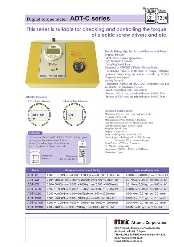 เครื่องมือวัดหลากหลายแบบภายใต้ Brand Attonic อาทิ Digital Force Gauge, Torque Meter,