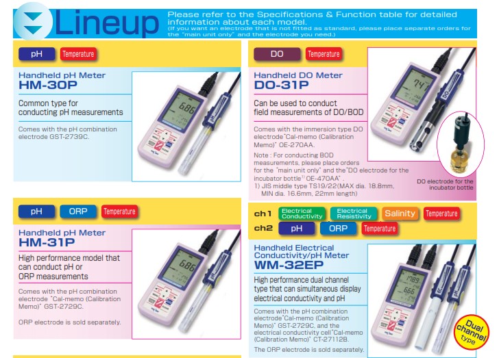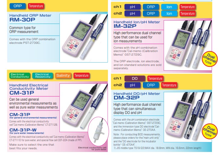 เครื่องวัดค่า ORP, HM-30P, RM-30P, DM-32P และเครื่องมือวัดอื่นๆอีกมากมาย